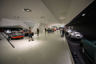 The new Porsche museum stands on a conspicuous junction just outside Porsche Headquarters in Zuffenhausen. The display area covers 5600 square meters featuring around 80 exhibits, many rare cars and a variety of historical models.